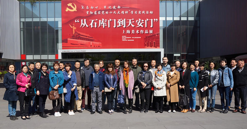 “从石库门到天安门”上海美术作品展共展出了出生在上海或在上海工作的美术家的96件作品,以鲜明的主题、丰富的题材、严谨的画风、饱满的形象,生动展现了中国共产党在历史风起云涌中艰苦奋斗的感人场景,生动展现了中国共产党领导中国革命、建设、改革的辉煌成就,生动展现了上海建设社会主义现代化国际大都市的重要实践,是中国共产党“进行伟大斗争、建设伟大工程、推进伟大事业、实现伟大梦想”的缩影和象征。在展厅里,党员们边走边看,时而驻足凝视,时而轻声交流。通过参观,党员们回顾了中国共产党的发展历程,深刻体会了党在社会各方面取得的成就,在思想上进行了一次深刻的洗礼,从而激励社联全体党员以习近平新时代中国特色社会主义思想和党的十九大精神为指引,增强“四个意识”、坚定“四个自信”,不忘初心、牢记使命,为实现“两个一百年”奋斗目标和中华民族伟大复兴的中国梦继续奋斗!